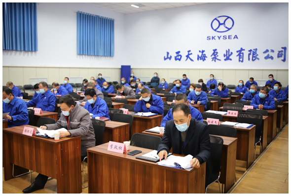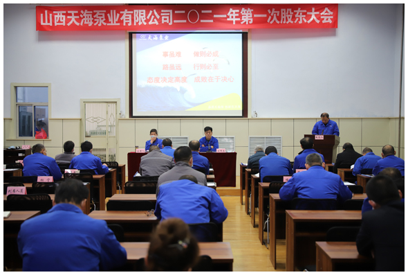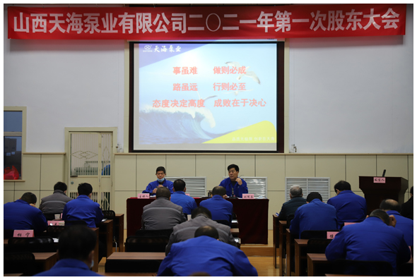 1月30日,在职教中心召开天海泵业2021年第一次股东大会。上午8:00,各位股东、列席会议的各单位(分公司)中层以上干部准时到场,按规定依次落座。公司董事长刘院昌同志、总经理宁克法同志在大会主席台上就座。大会由宁克法同志主持,刘院昌同志作了重要讲话。